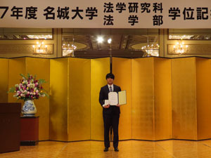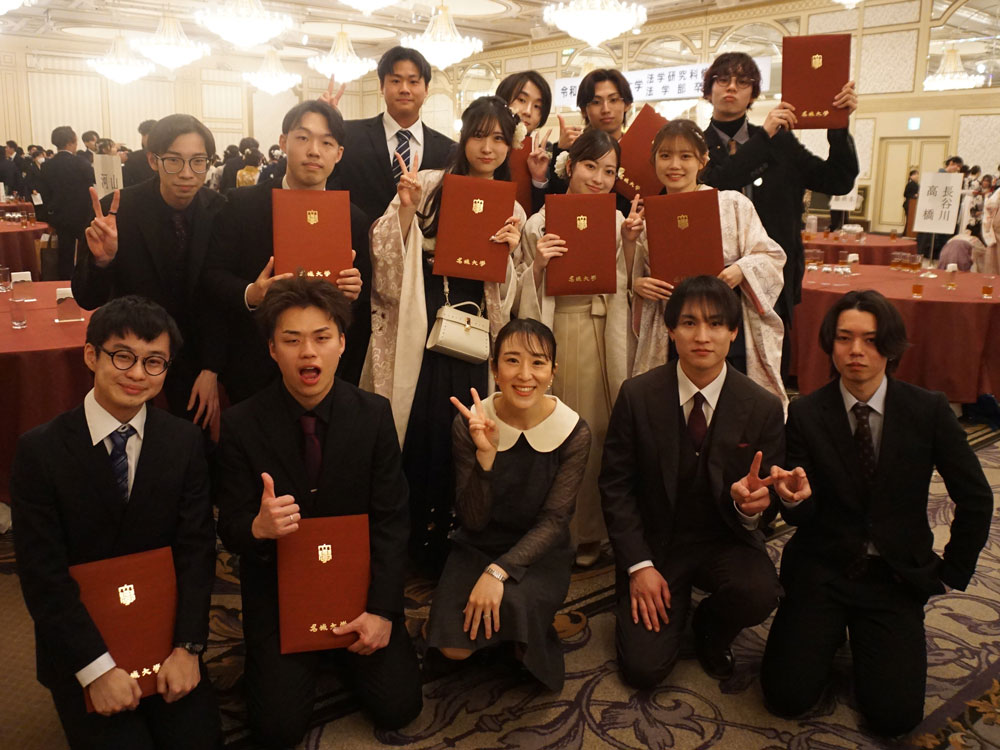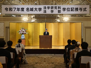2026年3月17日(火)、2025年度の学位記授与式が挙行され、法学部から372名の卒業生、法学研究科から4名の修了生が、希望に胸をふくらませて社会に羽ばたきました。